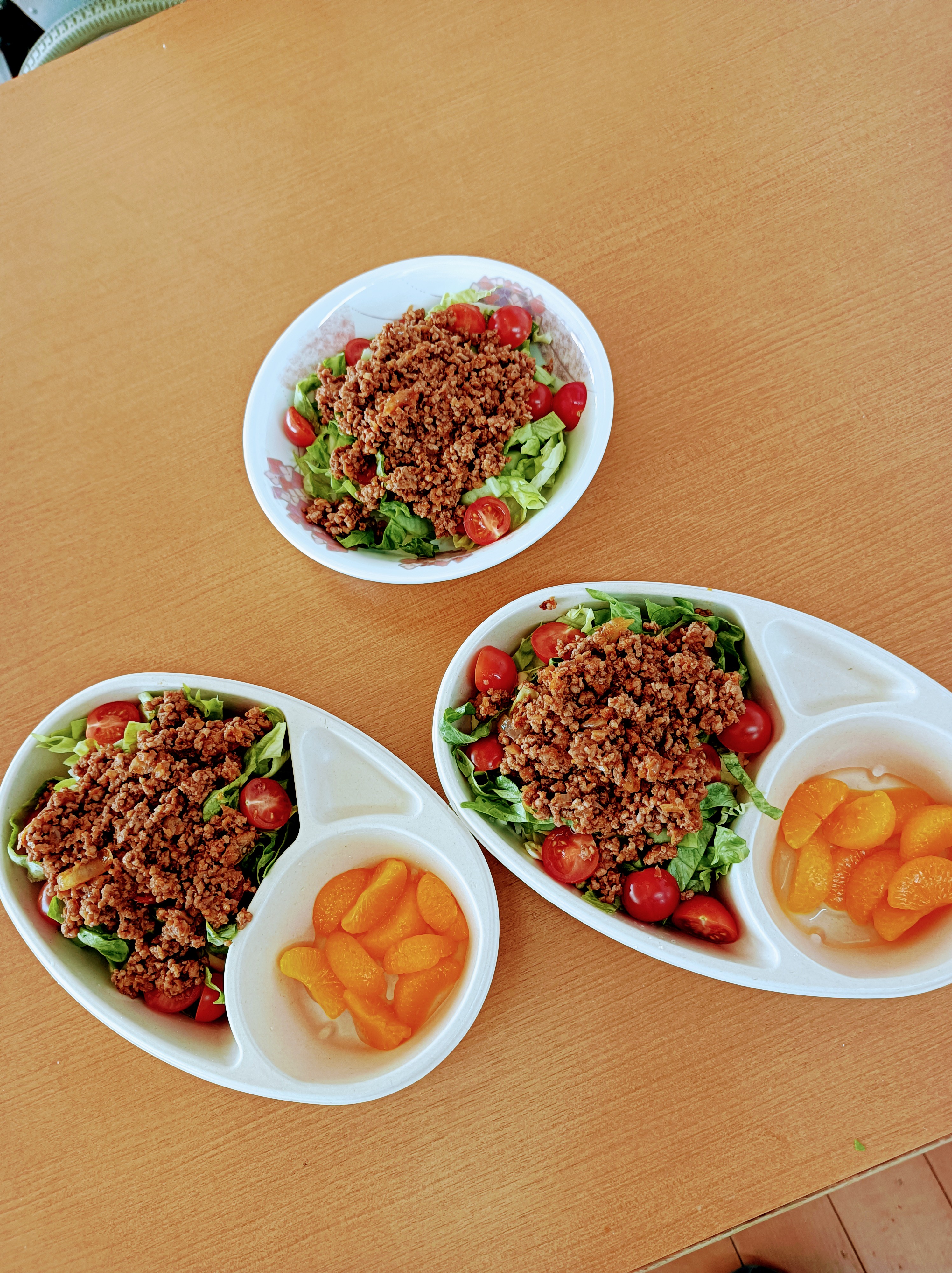 土曜日は、利用者様からのリクエスト昼食です😄今回は食べたことがないという『タコライス』に決まりました‼️