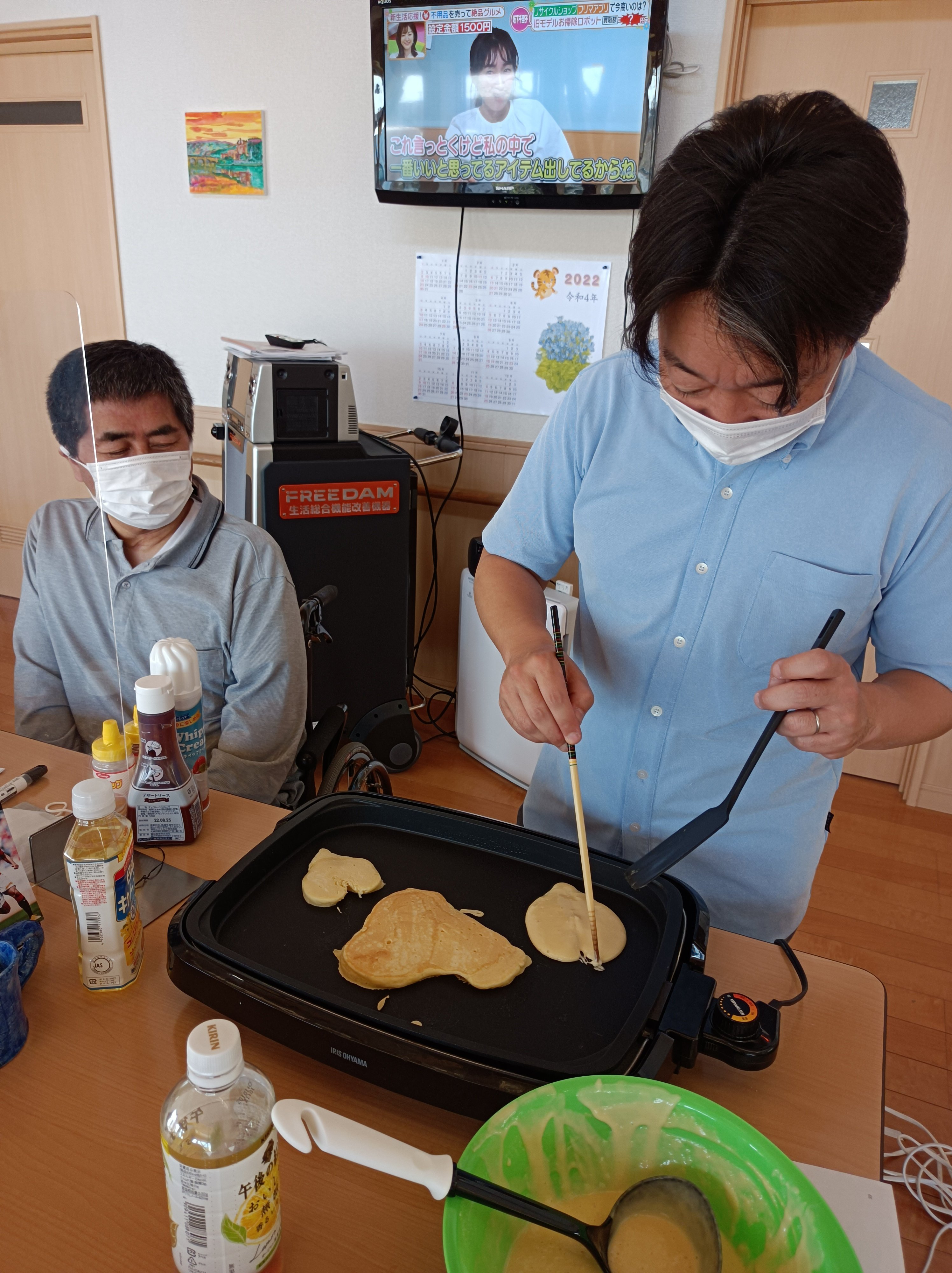 バレンタインデーに女性利用者様から、チョコを頂いたのでお返しに手作りパンケーキを作りました✨✨