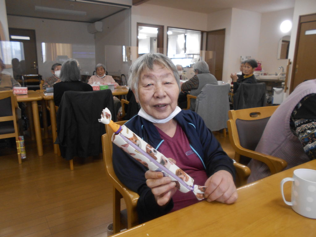 これは何に見えますか?実は・・トイレットペーパーの芯を二つ繋げて作った、キャンディー風のポーチとなっております。すごく素敵ですよね!!中身がトイレットペーパーとは思えないですよね・・。色々な柄をご用意して皆さんに選んで頂きました✨