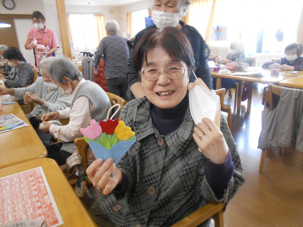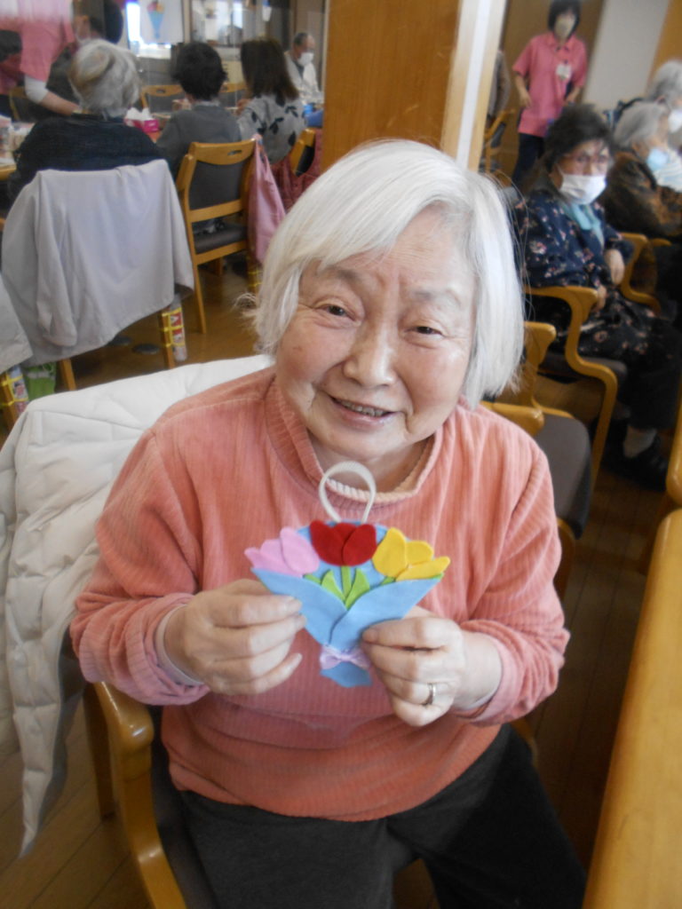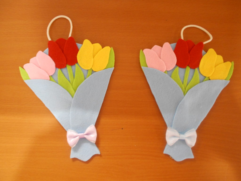 こちらは、フェルトで作った、チューリップの花束の壁掛けです★春らしくてとても素敵ですよね!このまま誰かにプレゼントしたくなりますよね~😉皆さん綺麗に可愛く作られていました。