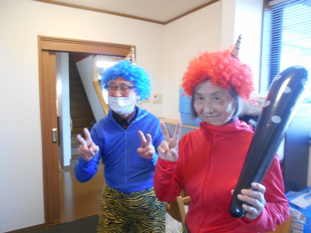 BLOG ♬鬼は外~福は内♬👹 2026年2月9日2026年2月9日objective 先週、花びよりでも豆まきをしました利用者さんや職員が鬼役になり、皆さんから新聞紙を丸めた大きな豆を優しく投げつけられ(笑)皆さんの厄を落としました。盛り上がりましたよ~♬ 皆さん、鬼の格好がお似合いですね~❤️